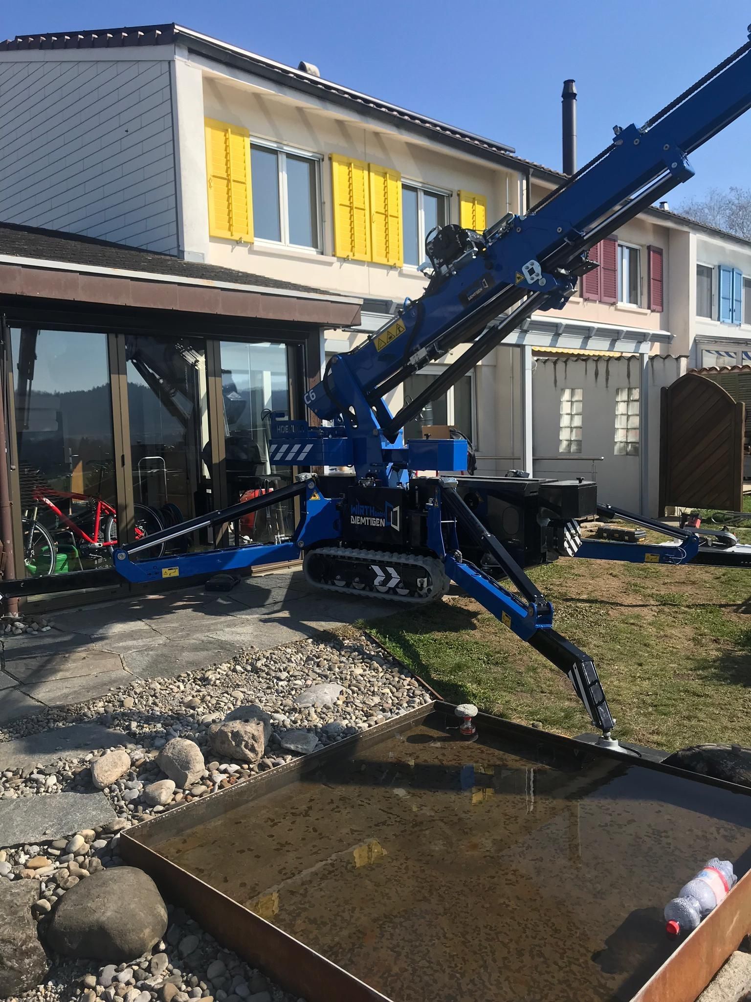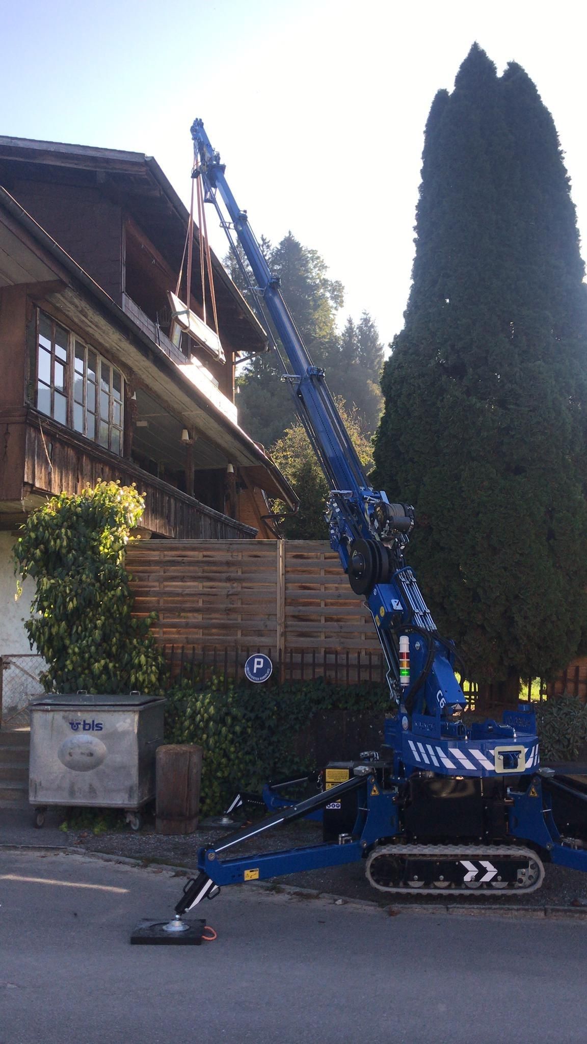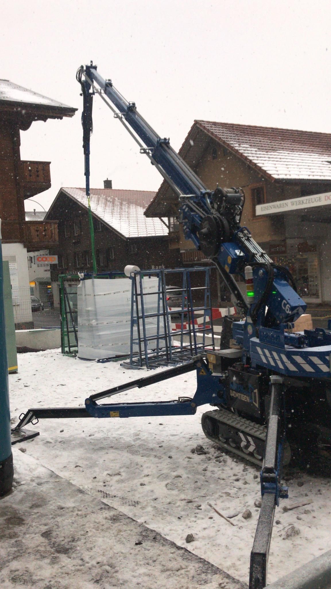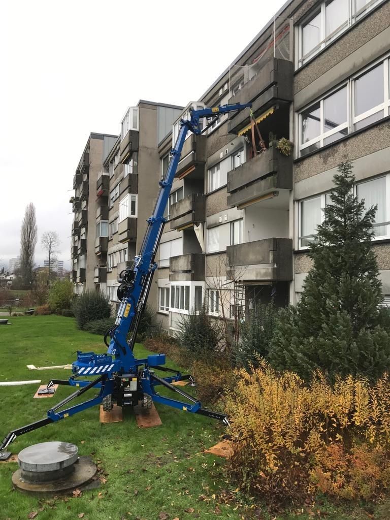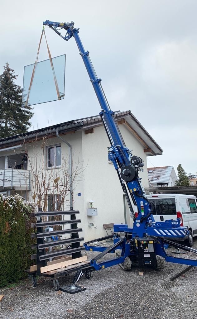 Mit einem Schwenkbereich von 330° kann der Glasboy praktisch rundum fungieren. So erledigen wir Montage- , Ein- und Ausbauarbeiten reibungslos.