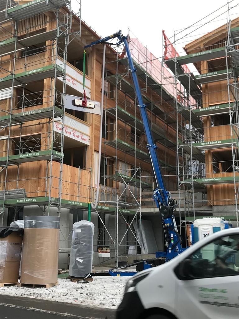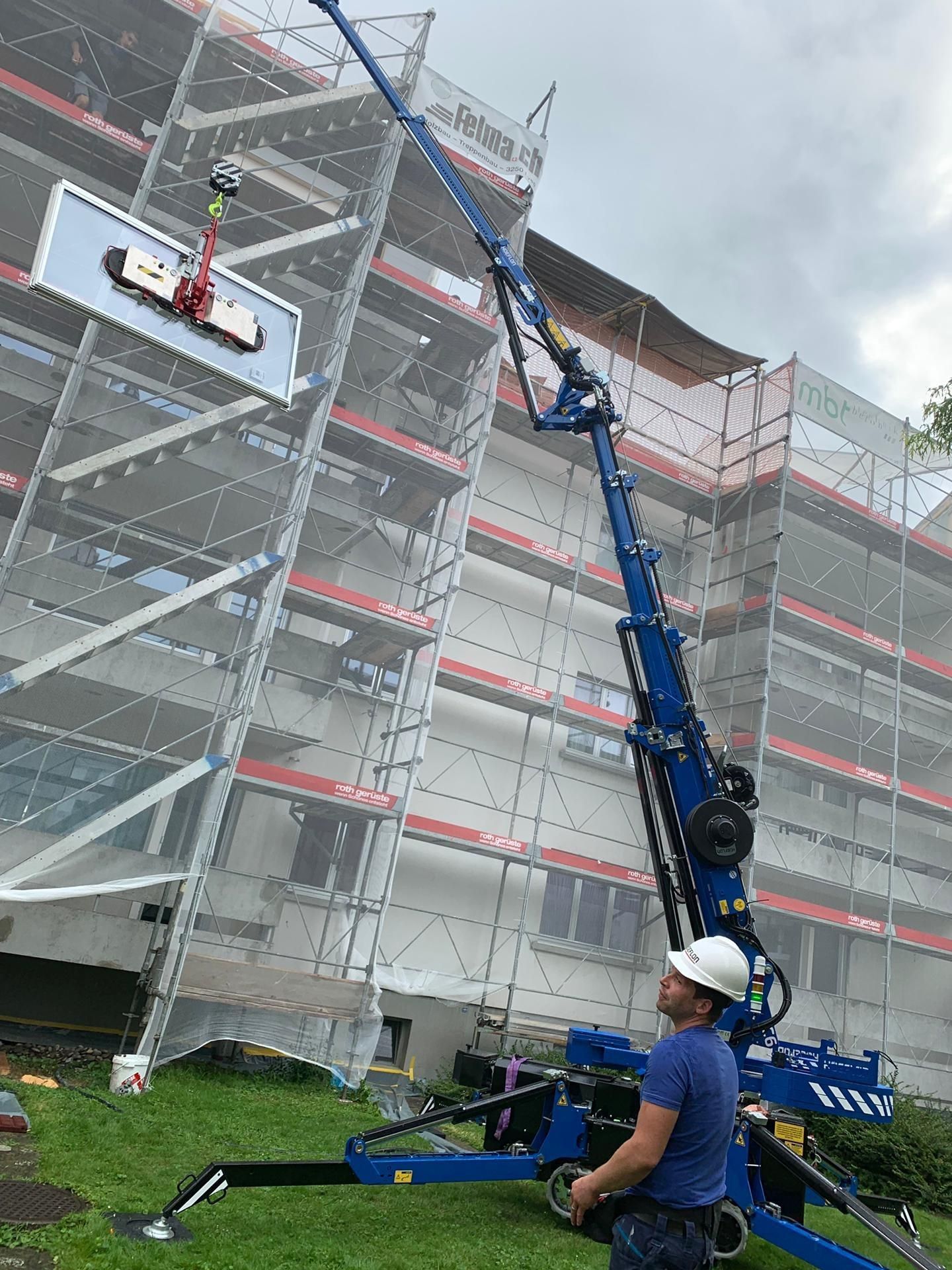 Bis zu 7.2 m in der Höhe kann der Glasboy mithilfe der Sauger Glas bis zu 600 kg heben. Ideal, um Fensterarbeiten in der Höhe auszuführen. Mit stärkeren Saugnäpfen kann die Traglast gar bis auf 1'000 kg erweitert werden.